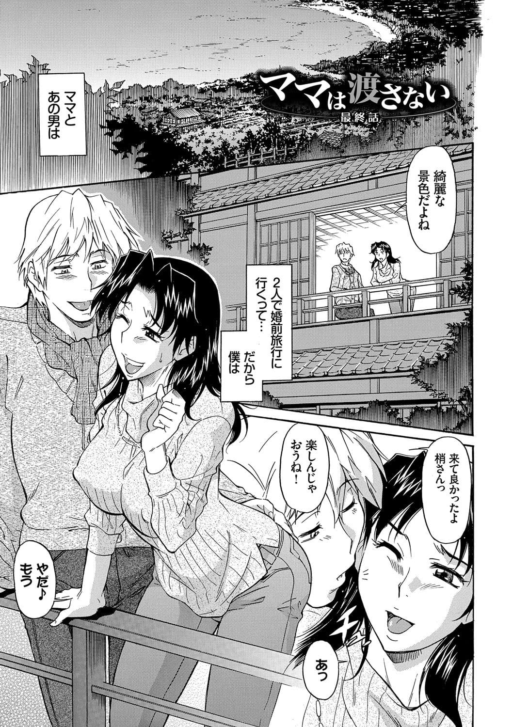 婚前旅行で来た温泉旅館でイチャイチャしてエッチを迫ってくる婚約者を薬で眠らせるシングルマザー!熟睡したのを確認すると、一目散に息子・悟が宿泊してる部屋に駆け込む!そして、出会うなり、息子チンポにむしゃぶりついてオナフェラを炸裂させる!さらに、豊満な胸でマラを挟み込みパイズリで乳内射精に導く!その後で露天温泉に移動する二人!まだオーガズムに達していない母親が、我慢出来ずに息子を押し倒して騎乗位挿入!淫乱な腰振りでヨガり狂い、膣内射精されてお漏らし絶頂を決めるのだった!